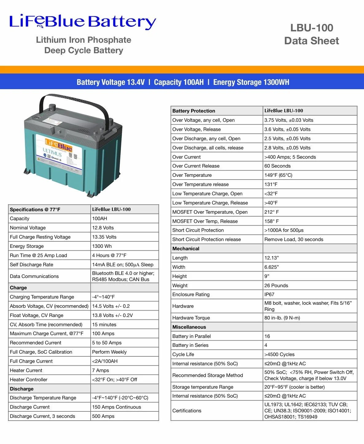MPU controlled heating for safe charging down to -4°F. Advanced algorithm heater controller, Does not use battery power for heating.
