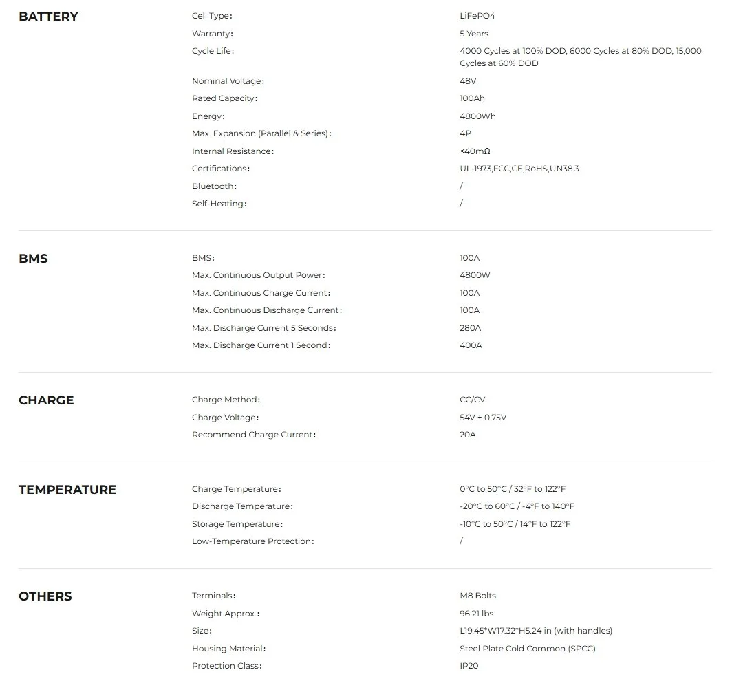 Precautions for Use: To connect in parallel, batteries must be identical (same brand, type, voltage, capacity, and BMS) and purchased within 1 month.